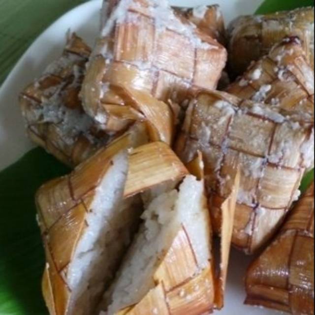 Cara nak ikat pon admin tak tau. Terbuat dari beras ketan yang dibungkus dengan daun palas palem kemudian dibentuk menjadi segitiga dan dimasak hingga matang. Daun pandan untuk membalut Sukatan beras pulut dan air santan sama banyak.